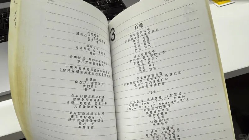 (思达在给大家签礼物,歌词本)