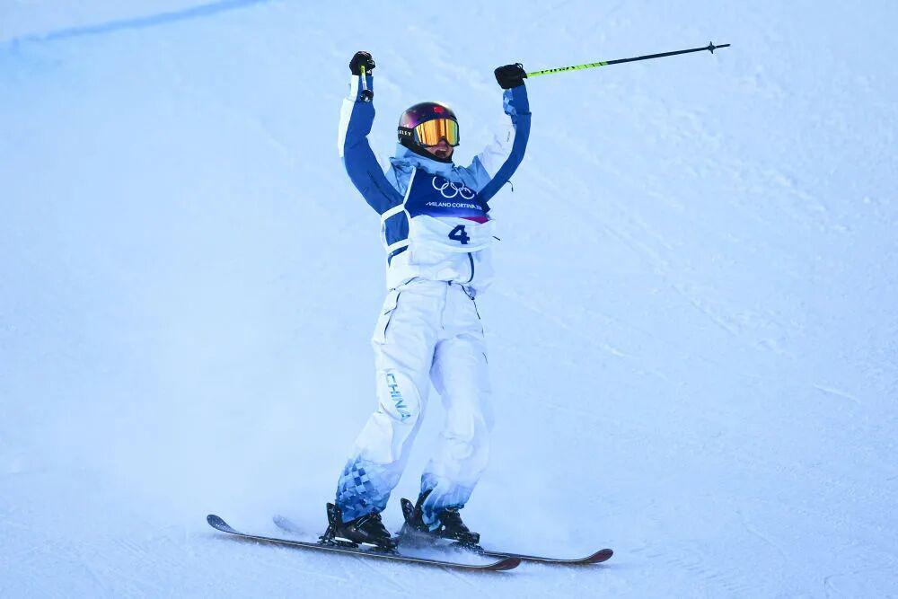 ↑谷爱凌在等分区庆祝。