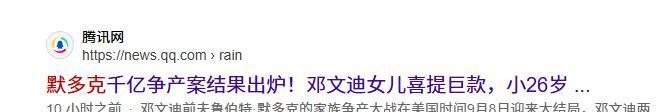 1.腾讯网:默多克千亿争产案结果出炉!邓文迪女儿喜提巨款,小26岁现任妻子一无所获?